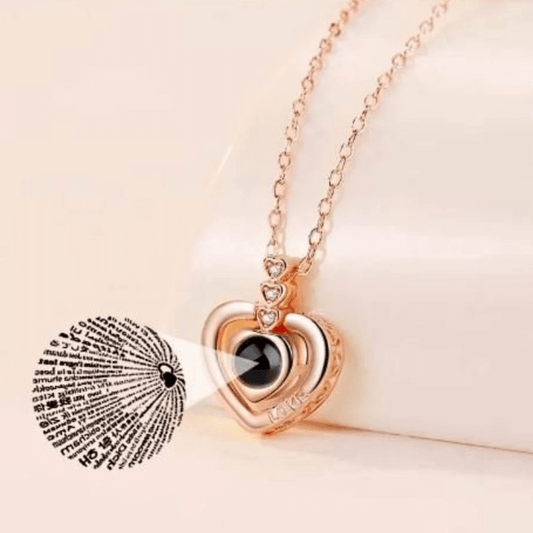 COLLAR TE AMO EN 100 IDIOMAS + JABÓN ARTIFICIAL ROSA CON OSO DE PELUCHE (Acero inoxidable)